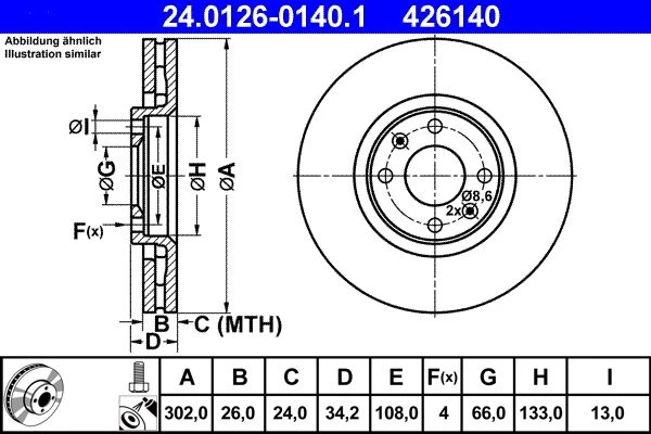 | Bolt hole circle Ø (mm) | 108.0 |