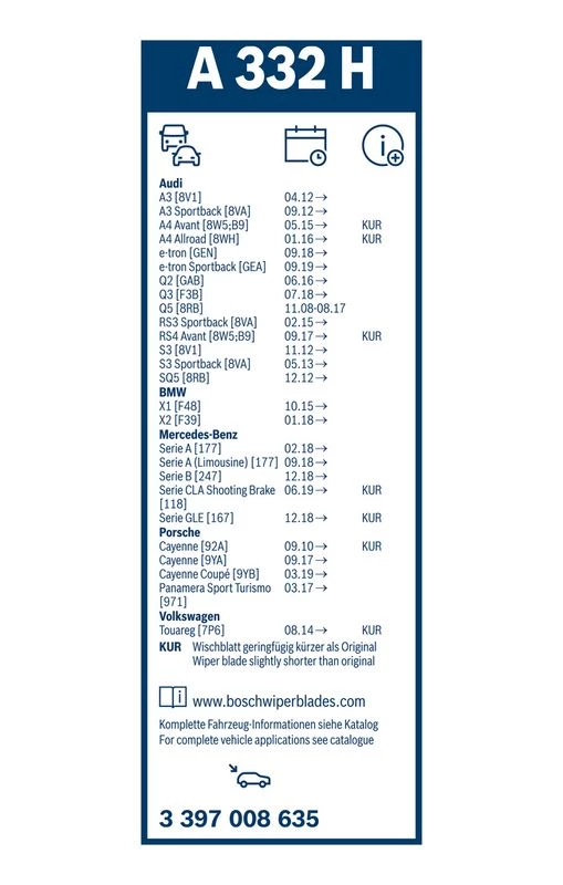 es, installing wiper blades is usually a quick and easy DIY task. Each Bosch wiper comes with detailed instructions and adapters for various arm types. If unsure, your local garage can assist in minutes.