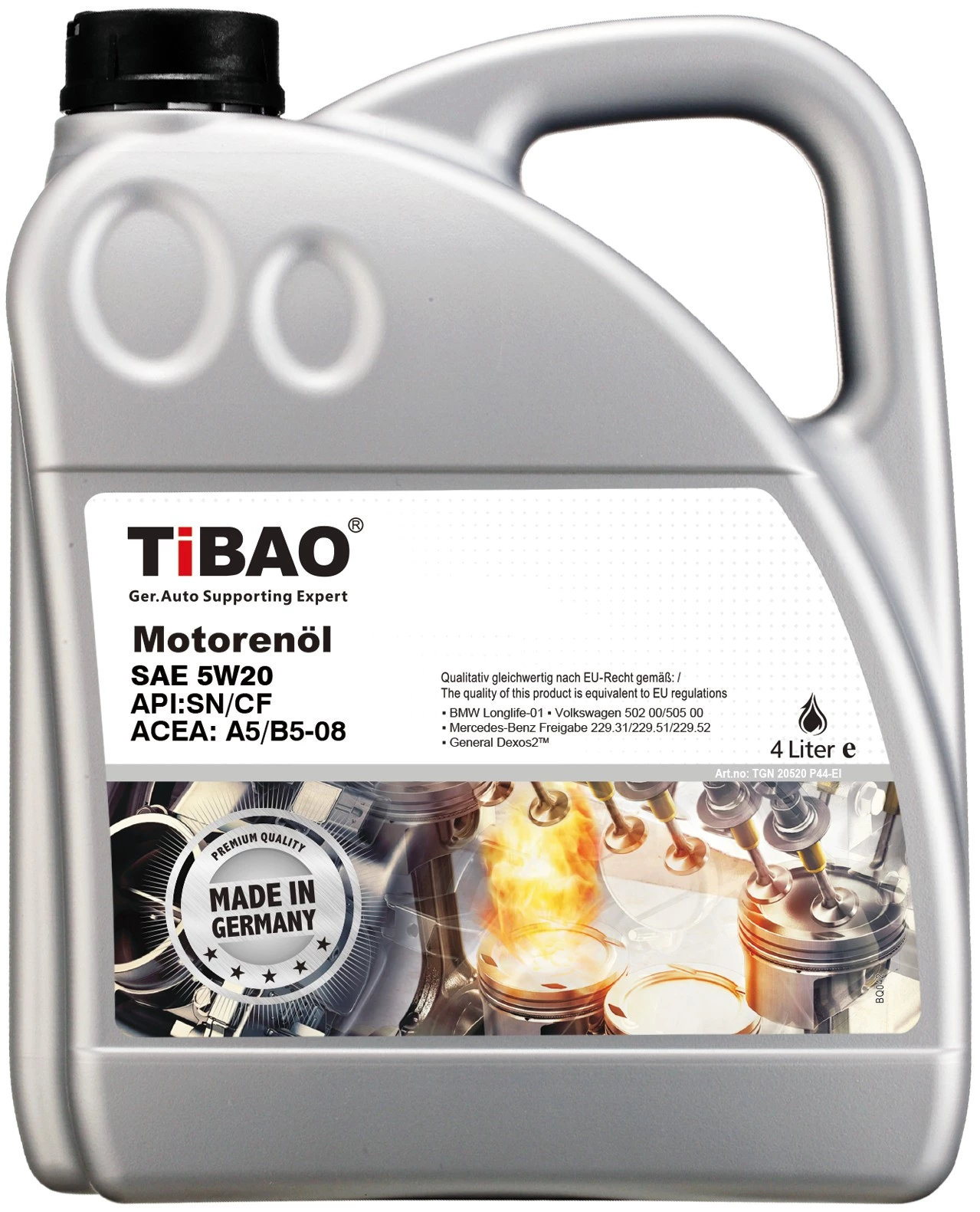 TIBAO Engine Oil 5W20 is a high-performance lubricant formulated to meet the latest API SP standards, offering advanced protection for modern engines. It is designed to improve fuel efficiency while providing excellent engine cleanliness and durability.