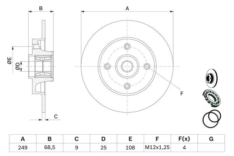 Disc dimensions (diameter, thickness, height, center bore)