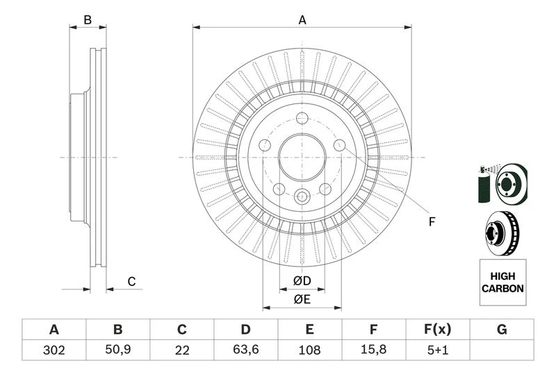 Disc dimensions (diameter, thickness, height, center bore)
