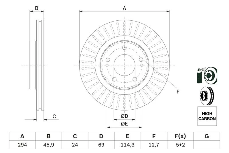 Disc dimensions (diameter, thickness, height, center bore)