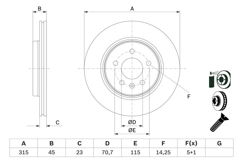 Disc dimensions (diameter, thickness, height, center bore)