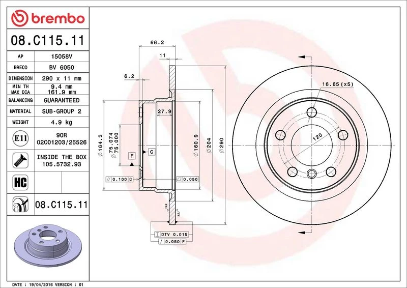 | Brake disc thickness (mm) | 11 |