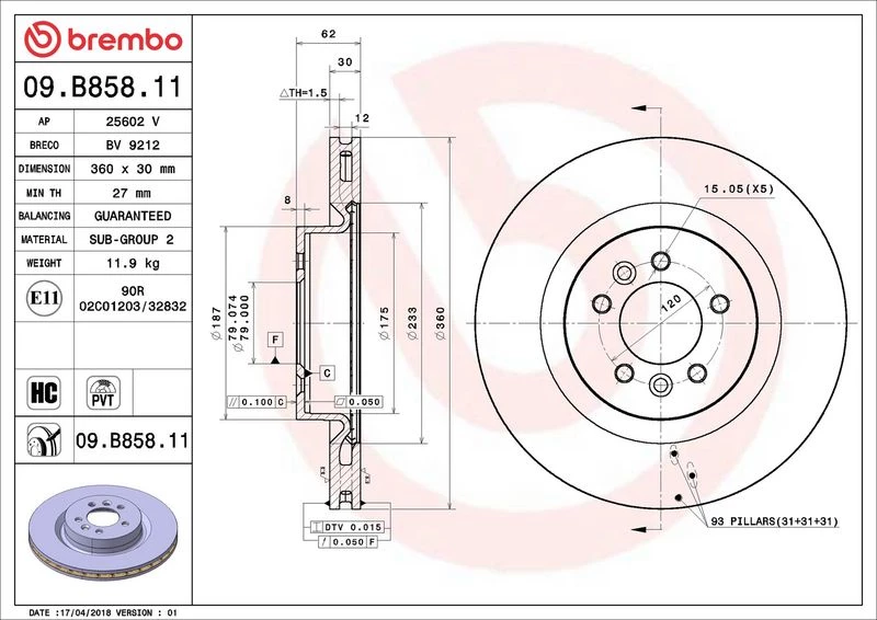 Disc dimensions (diameter, thickness, height, center bore)