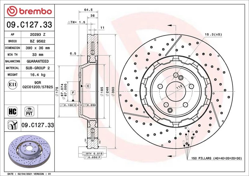 Disc dimensions (diameter, thickness, height, center bore)
