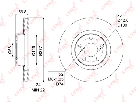 | Bolt hole circle Ø (mm) | 100 |