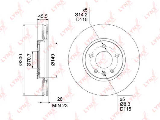 • Disc dimensions (diameter, thickness, height, center bore)