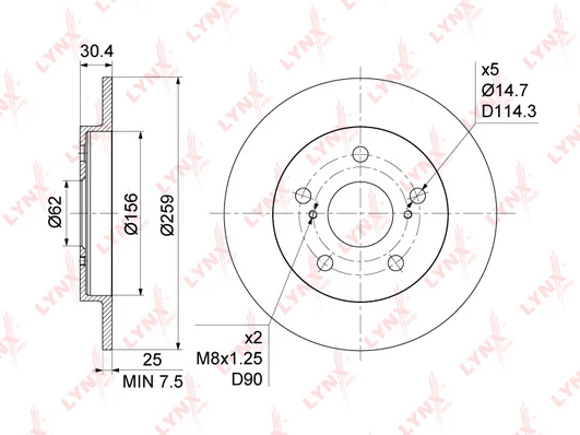 | Bolt hole circle Ø (mm) | 114.3 |