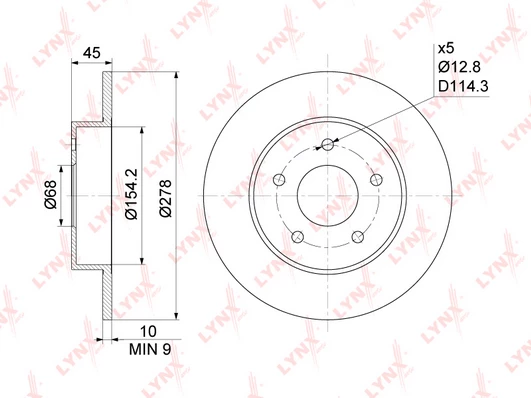 | Bolt hole circle Ø (mm) | 114.3 |