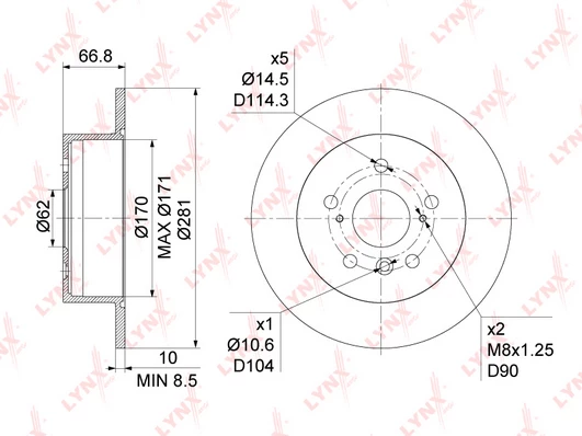 | Bolt hole circle Ø (mm) | 114.3 |