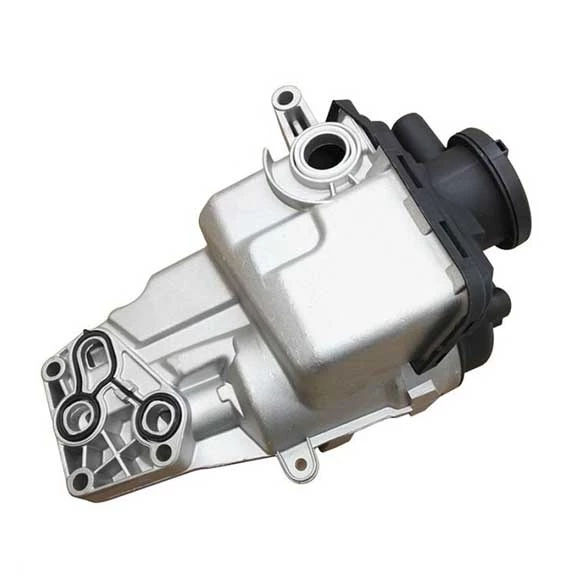 The oil filter housing holds the engine oil filter and channels engine oil through the filter for proper lubrication of internal components. It prevents leaks, maintains oil pressure, and ensures the engine receives clean oil. A damaged or worn housing may cause oil leaks, low oil pressure, or engine damage.