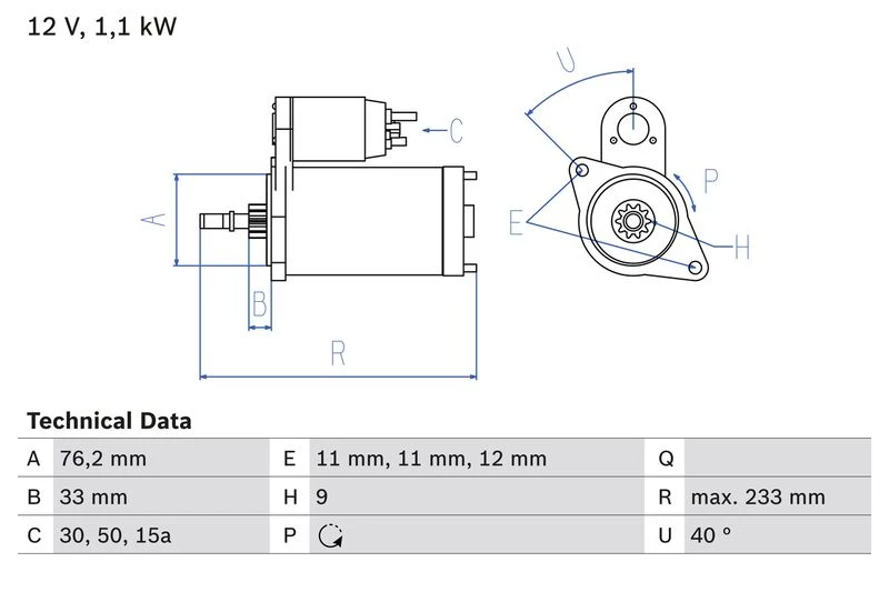 | Starter output (kW) | 1.1 |