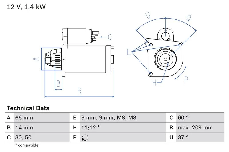 | Starter output (kW) | 1.4 |