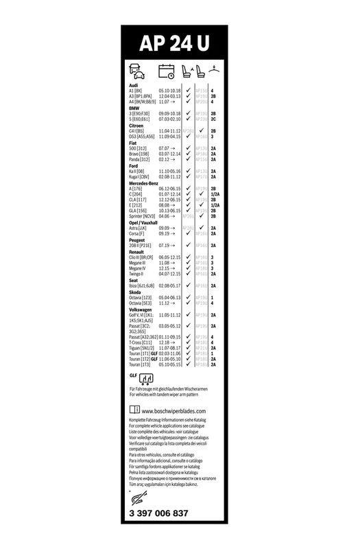 | Wiper blade type | flat wiper blade |