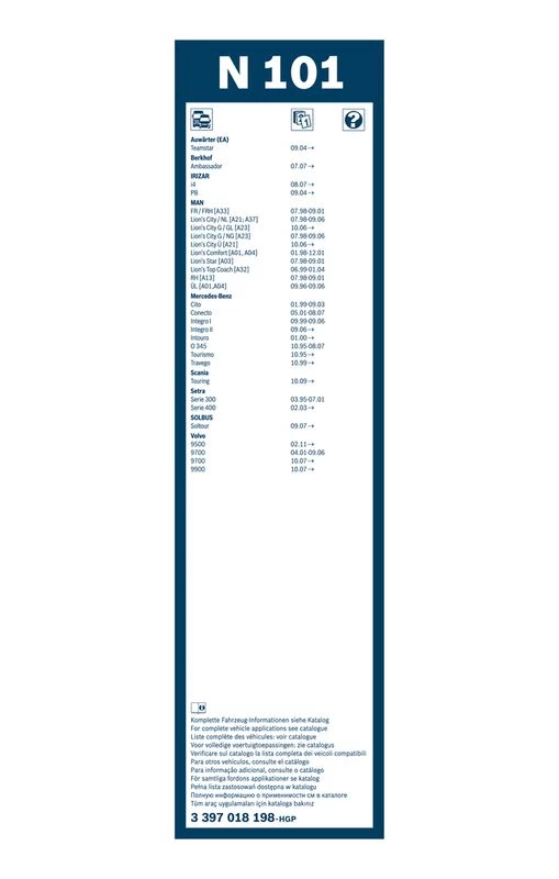 | Wiper blade type | bracket wiper blade without spoiler |